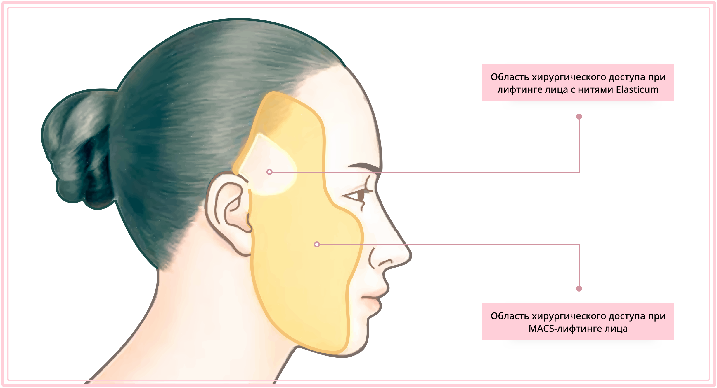 Разница области воздействия при лифтинге с нитями Elasticum и MACS-лифтингом