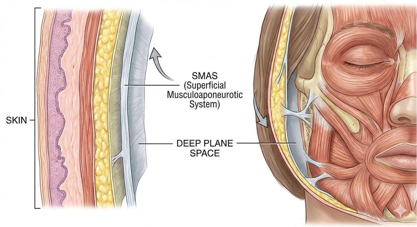 The Deep Plane Facelift is widely considered the most advanced evolution in facial surgery. While the SMAS lift works on top of the muscle layer, the Deep Plane technique goes underneath it.