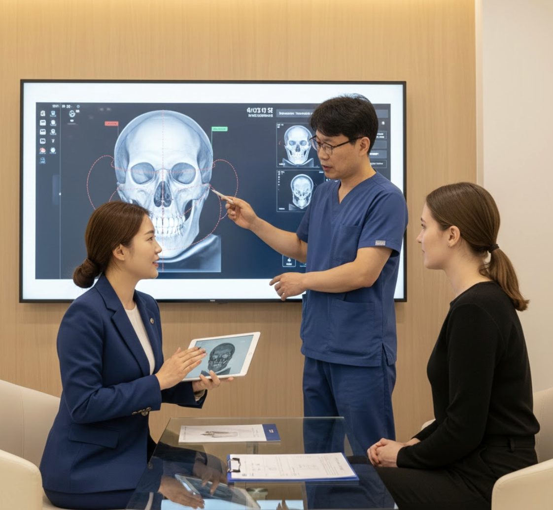 In Korea, safety and precision are driven by cutting-edge technology. Before any bone is touched, patients undergo a comprehensive 3D CT (Computed Tomography) scan. This allows surgeons to: