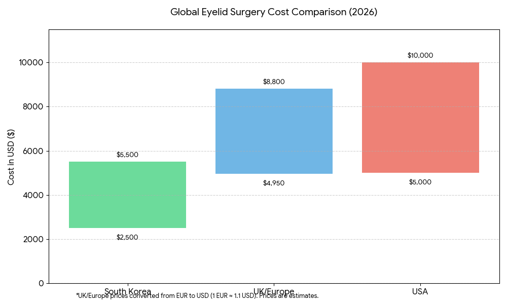 Why is Korea the best choice in 2026? Let’s look at the global average for blepharoplasty:
