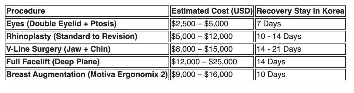 One of the most complex aspects of Korean plastic surgery is the pricing structure. While Korea offers high value, it is not "cheap." You are paying for the expertise of world-class surgeons and state-of-the-art facilities.