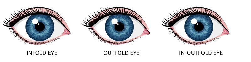 Out-fold (outline): recommended mainly for those who have a high nasal bridge, and large eyes.