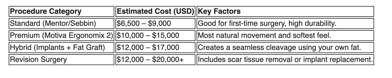 The breast surgery cost in Korea is transparent yet varies based on your specific needs. Here is a detailed breakdown: