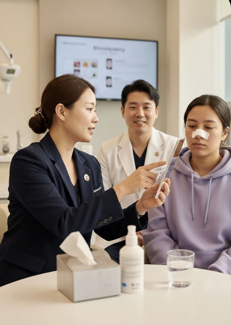 6. Is a Korean nose job painful? Most patients describe it as "stuffy" or "congested" rather than painful. The biggest challenge is breathing through your mouth for the first 2 days.